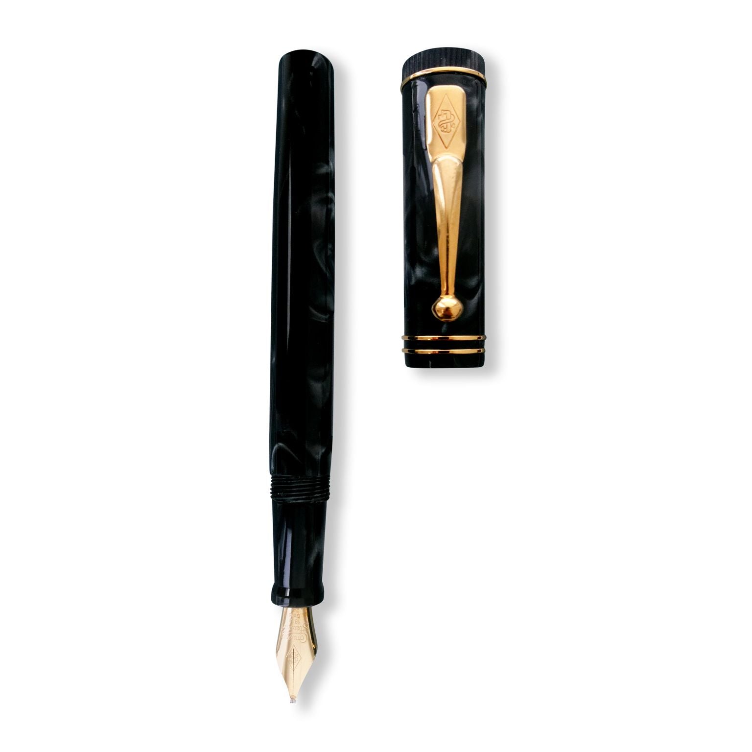Introducing the Conway Stewart Dandy Carbon Black - a new addition to the Dandy range and a must-have for Conway Stewart collectors. Its discreet size adds to its charm, and the slightly smokey silver flecks on the black finish make it truly unique. Assembled from genuine original CS components by Bespoke British Pens, this pen is sure to be a favourite among enthusiasts worldwide. Don't miss out on your chance to own one, as numbers are limited!