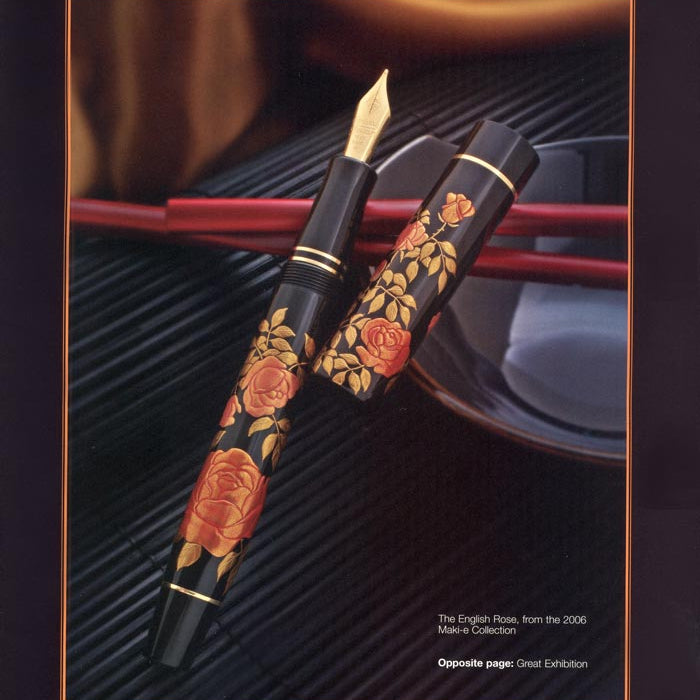 English heritage, while at the same time allowing for interpretation by a Japanese artist," she says. The brand- new English Rose fountain pen, the first in a series of four maki-e designs, accomplishes all that and more. As product manager for the maki-e line, Burke brought thirteen years of experience in pen design and development to the fore and is pleased with the final results: "[It] offers a perfect blend of East and West," she says.