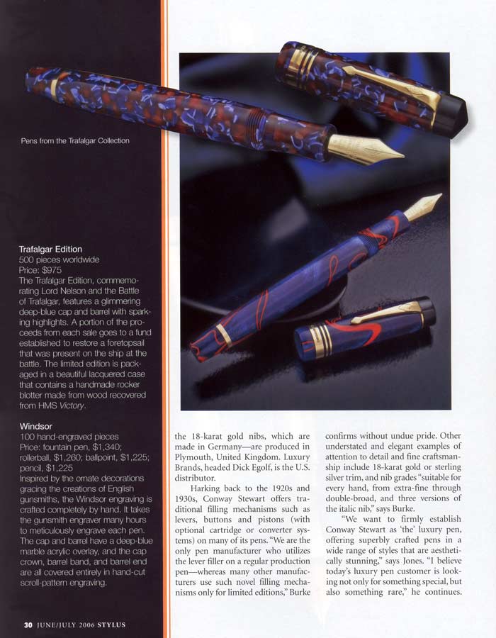 "We want to firmly establish Conway Stewart as 'the' luxury pen, offering superbly crafted pens in a wide range of styles that are aestheti- cally stunning," says Jones. "I believe today's luxury pen customer is look- ing not only for something special, but also something rare," he continues.