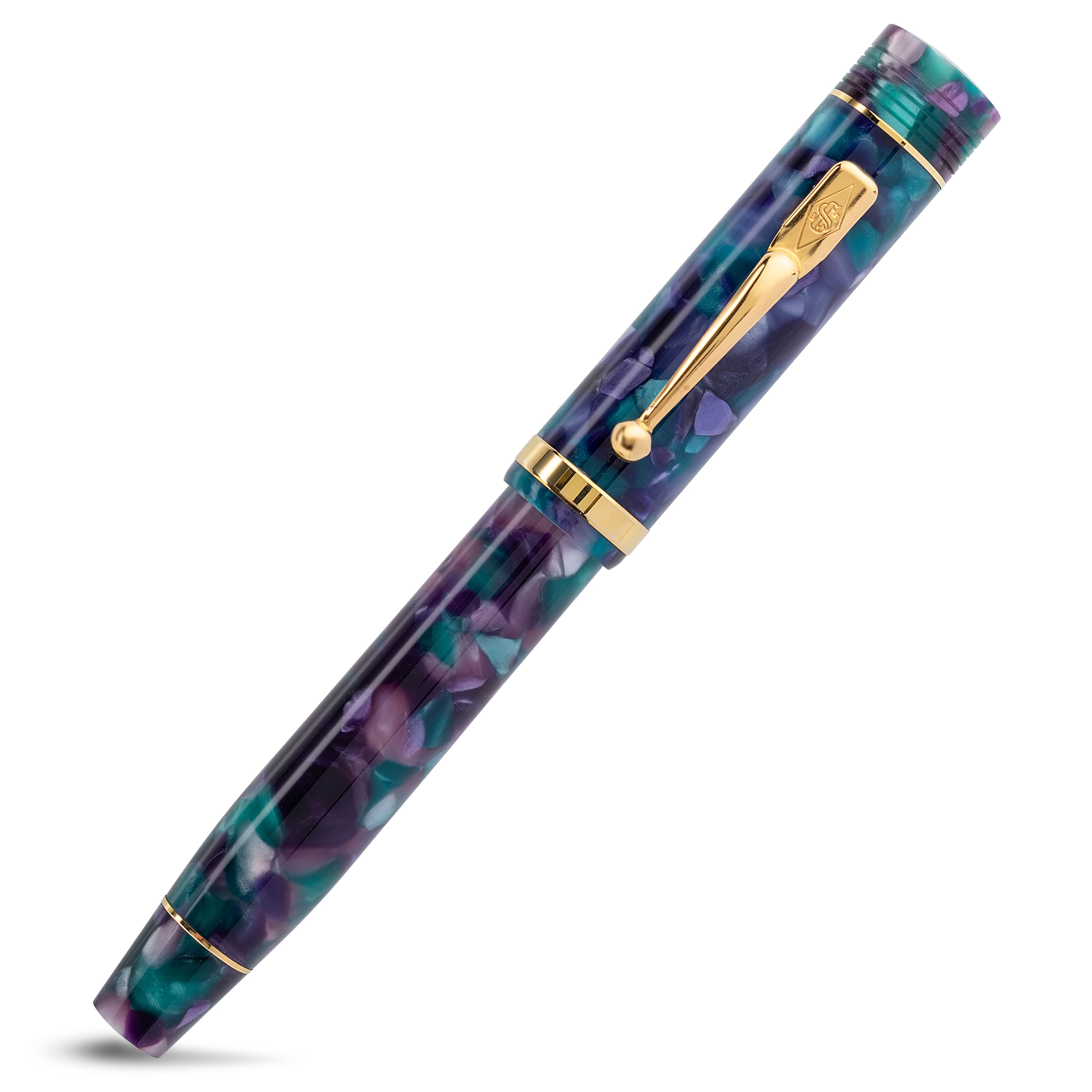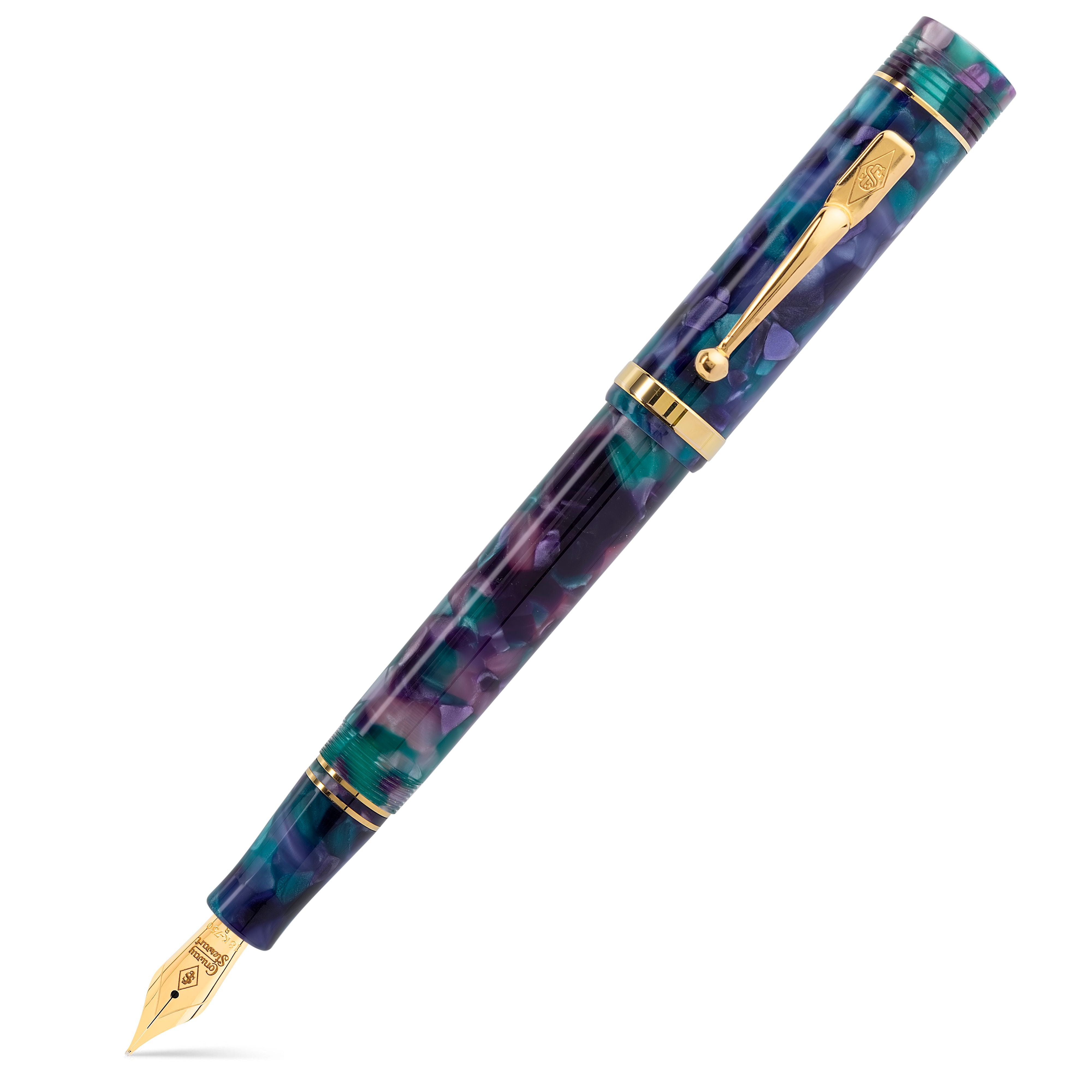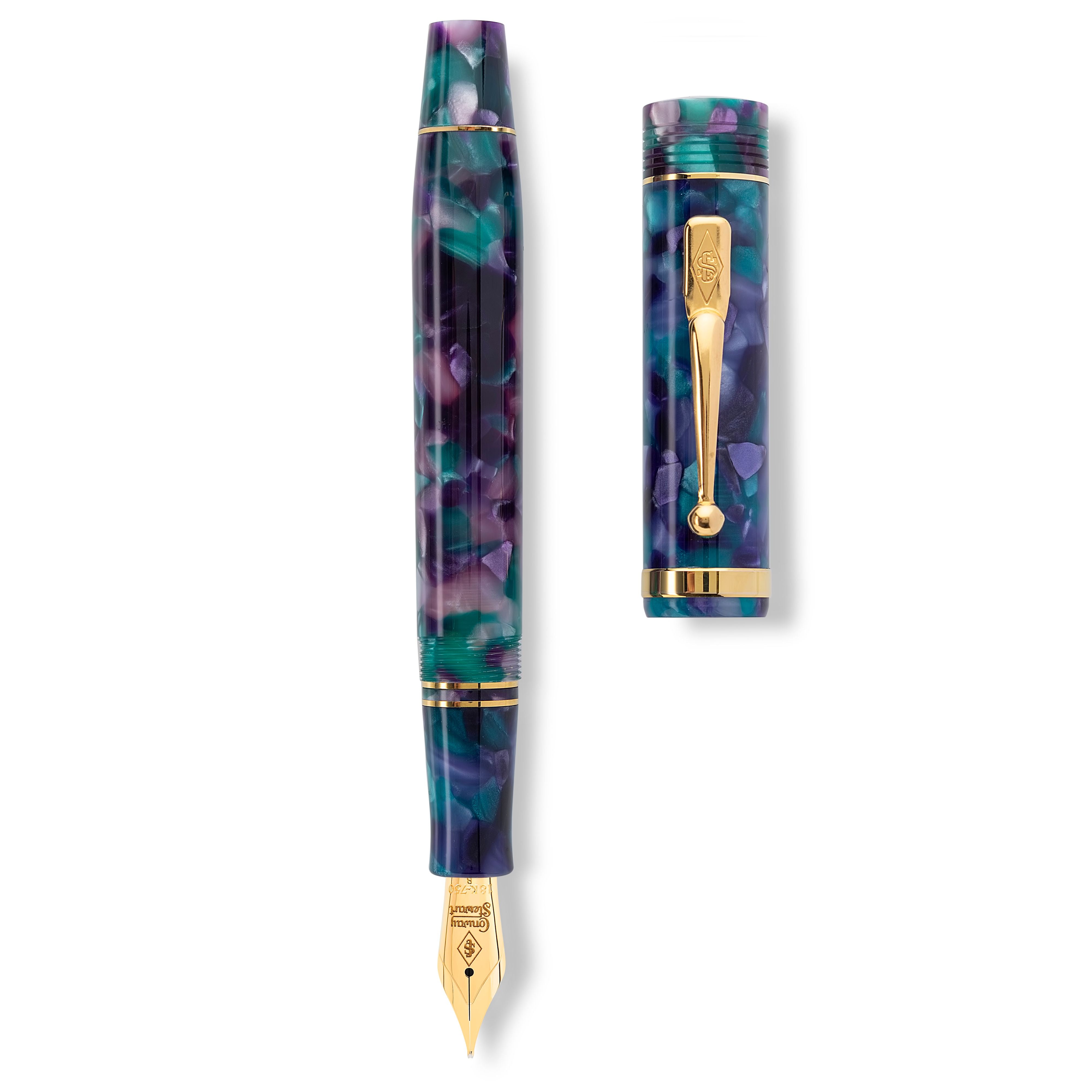 The Conway Stewart Churchill Azure is a limited edition pen with only 15 available. The Azure acrylic mix of purple and Mediterranean blue with paler and darker shades throughout is complimented by either solid Gold or Sterling Silver fittings. Inspired by the Great British Statesman, this impressively sized pen is Conway Stewart’s flagship pen. Each fountain pen comes with an original Conway Stewart black leatherette presentation box, a Certificate of Authenticity, User Guide, and an anti-tarnish polishing cloth to keep your pen in sparkling condition. Get your hands on this unique and elegant pen while it’s still available.