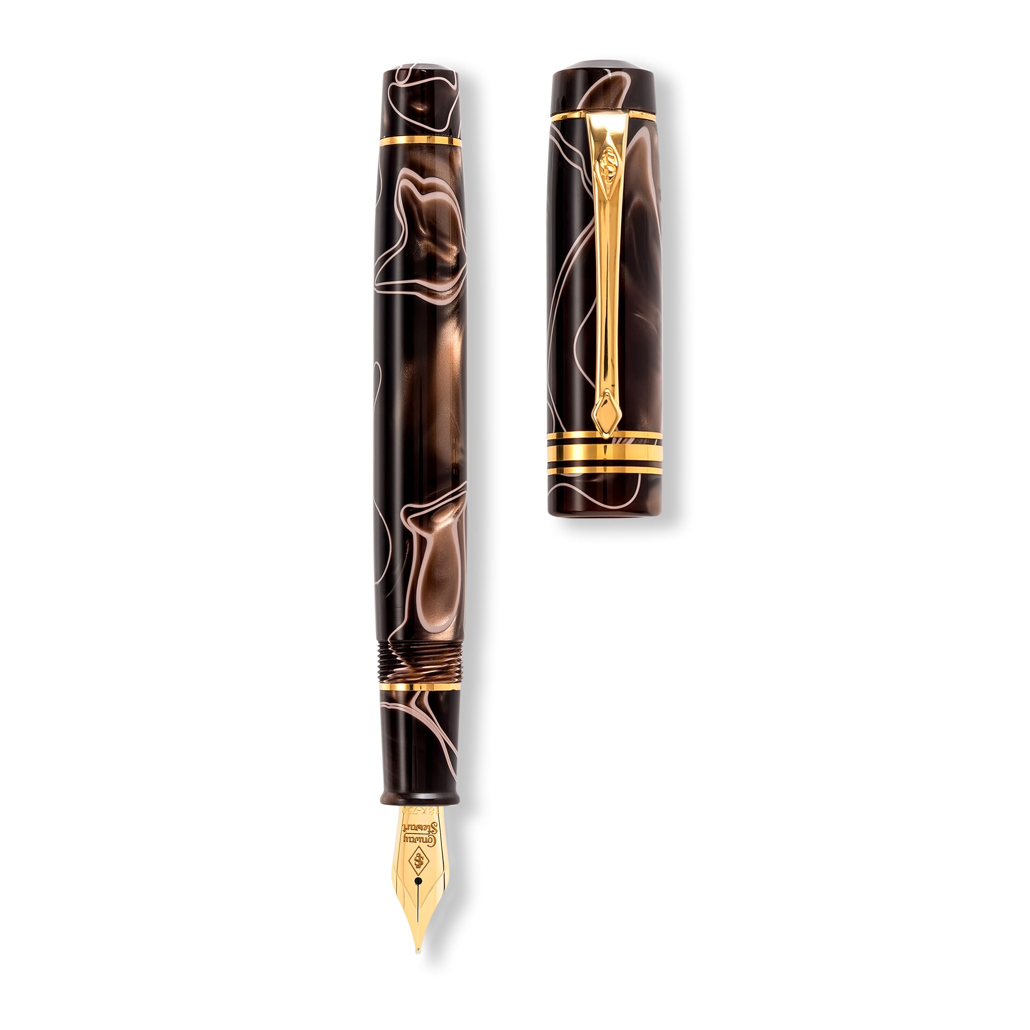 Wir stellen Ihnen das Belliver Mocha von Conway Stewart vor, ein wunderschön gearbeitetes Schreibgerät, das die perfekte Balance zwischen Design und Funktionalität bietet. Mit seinem massiven Messingschaftliner und dem sanft konischen Abschnitt bietet dieser Stift außergewöhnlichen Komfort bei langen Schreibsitzungen. Die dezenten Akzente und das klassische Design des Belliver machen es zur idealen Wahl für diejenigen, die ein zeitloses Schreibgerät suchen. Untergebracht in einer eleganten schwarzen Kunstleder-Präsentationsbox, komplett mit Echtheitszertifikat und speziellem Poliertuch, ist der Belliver als Füllfederhalter oder Tintenroller mit einer Auswahl an feinen, mittleren oder breiten 18-Karat-Gold-Flag-Federn erhältlich. Erleben Sie das perfekte Schreibgefühl mit dem Belliver Mocha von Conway Stewart.