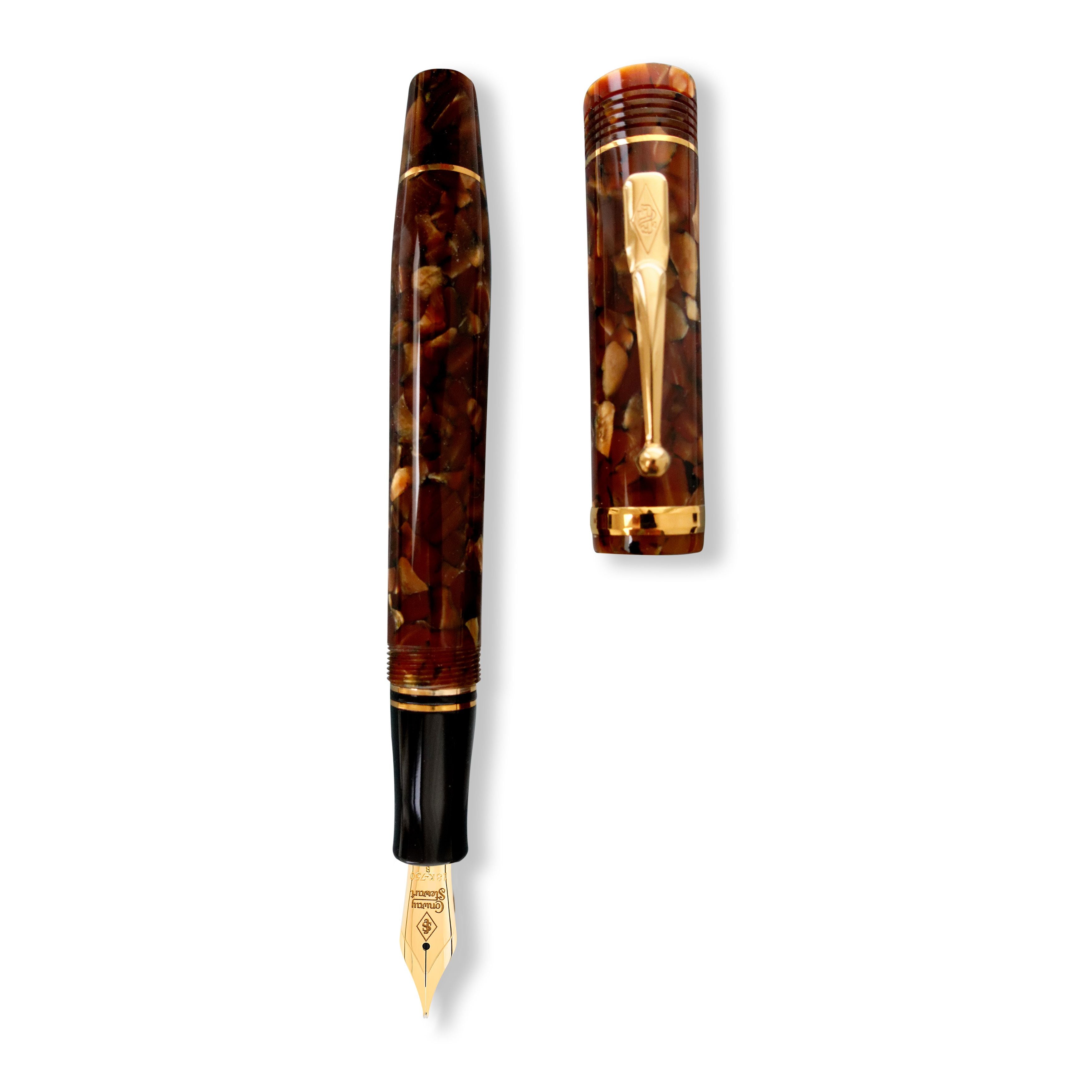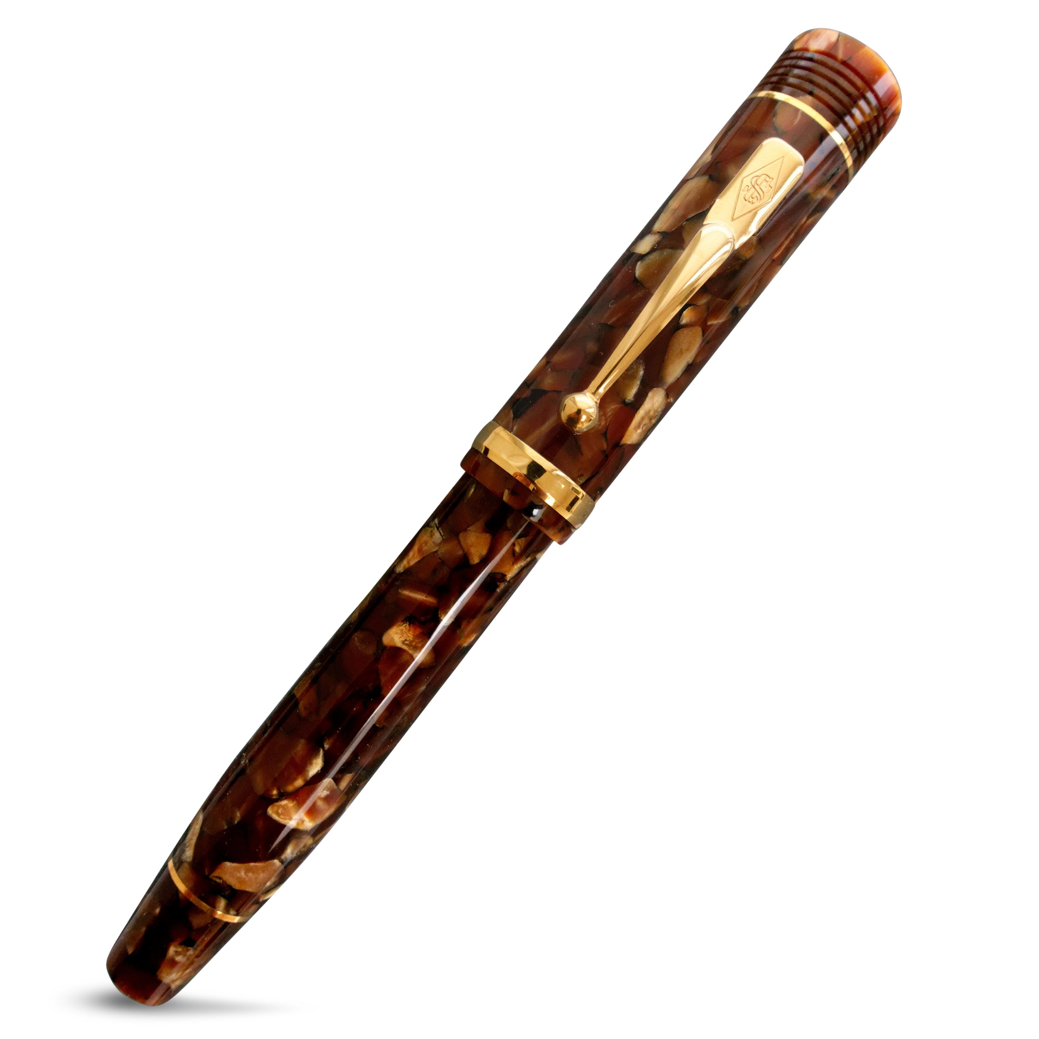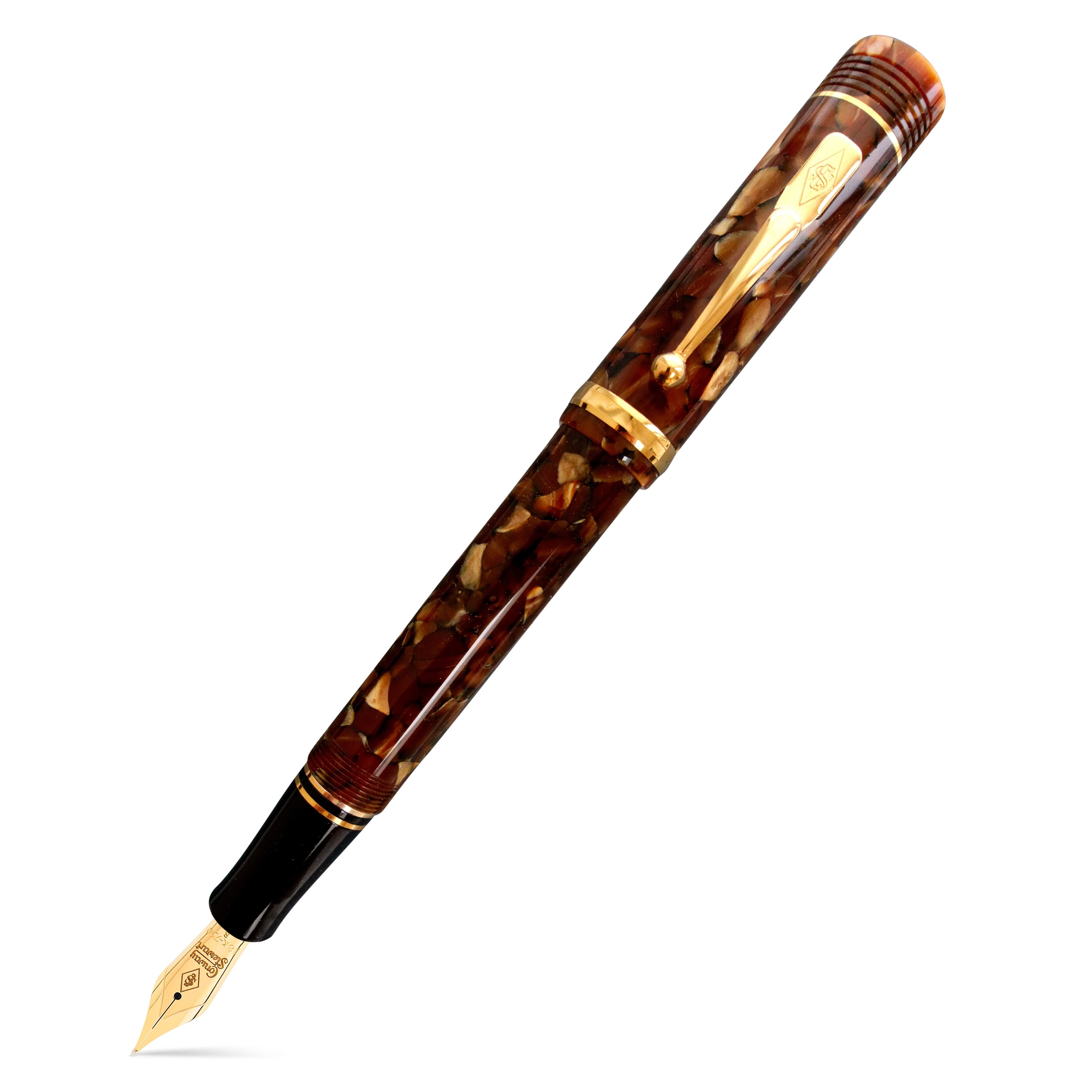 Presentamos el Conway Stewart Churchill Bronze, un bolígrafo raro e impresionante que irradia clase con sus accesorios de oro macizo de 9 quilates y su exclusivo acrílico de bronce. Limitado a solo 20 disponibles, cada pluma estilográfica o roller viene en una caja de presentación de cuero sintético negro original con un certificado de autenticidad, una guía del usuario y un paño de pulido antideslustre. Elija entre una selección de puntas Flag de oro de 18 quilates o anchos de punta redonda para una experiencia de escritura personalizada. No se pierda este exclusivo y sofisticado instrumento de escritura.