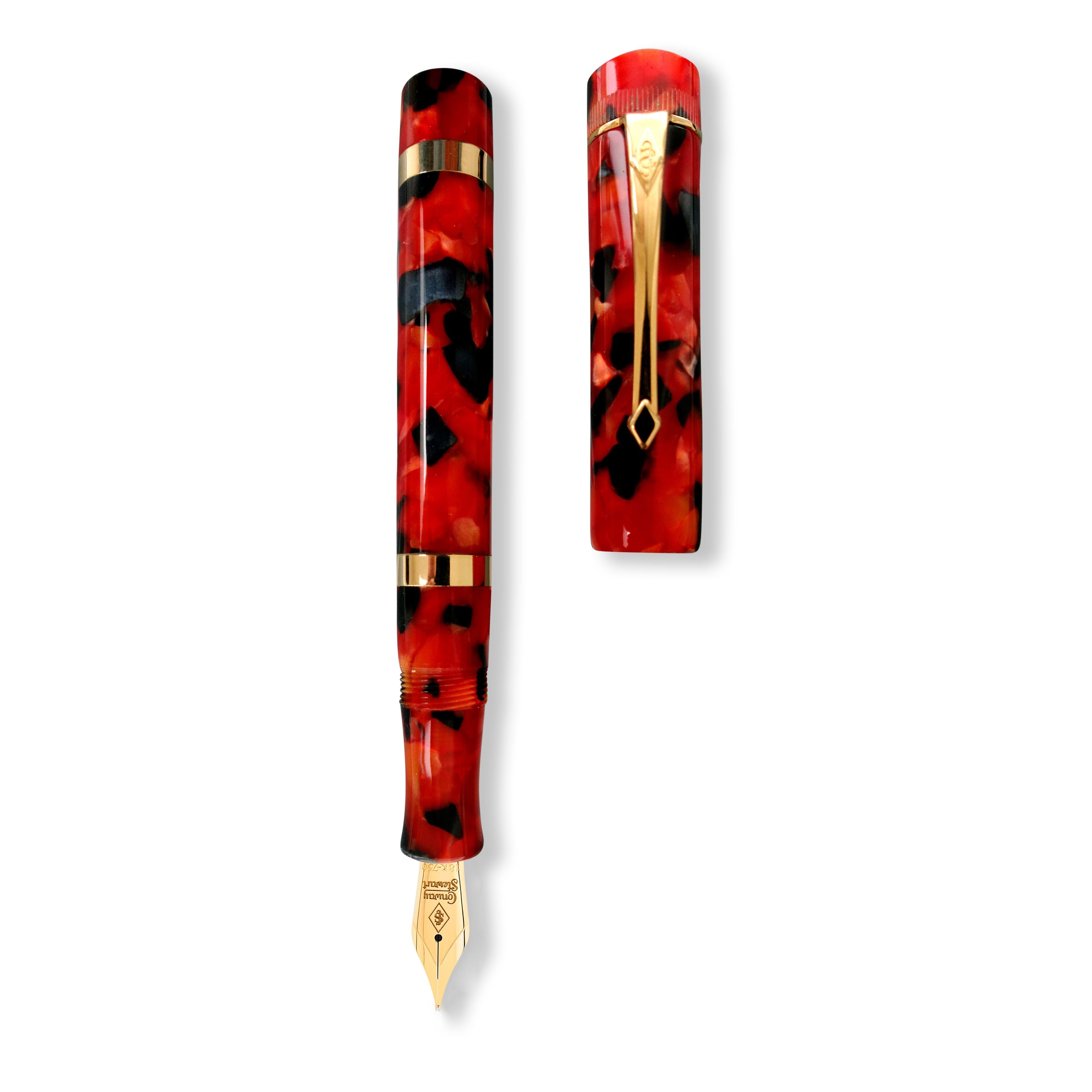 El Conway Stewart Marlborough Meteor es un elegante bolígrafo de inspiración vintage que cuenta con un cuerpo de acrílico Meteor ardiente, que llama la atención de cualquier entusiasta de los bolígrafos. Con un diseño recto y un clip de estilo vintage, este bolígrafo emana la sofisticación de la era Art Deco. Las bandas de oro macizo de 9 quilates alrededor del cuerpo, junto con el patrón dentado en la parte superior del capuchón, añaden un toque de lujo. El Marlborough Meteor está equipado con un plumín de oro de 18 quilates, lo que hace que cada trazo sea suave y sin esfuerzo. Presentado en una caja de presentación de cuero negro que también sirve como portalápices de exhibición, este bolígrafo es una adición impresionante a cualquier colección.
