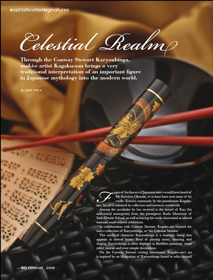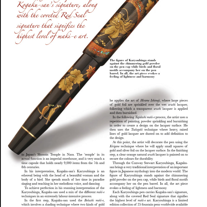 En colaboración con Conway Stewart, Kogaku-san creó la colección maki-e de Karyoubinga, o "la Doncella Celestial".