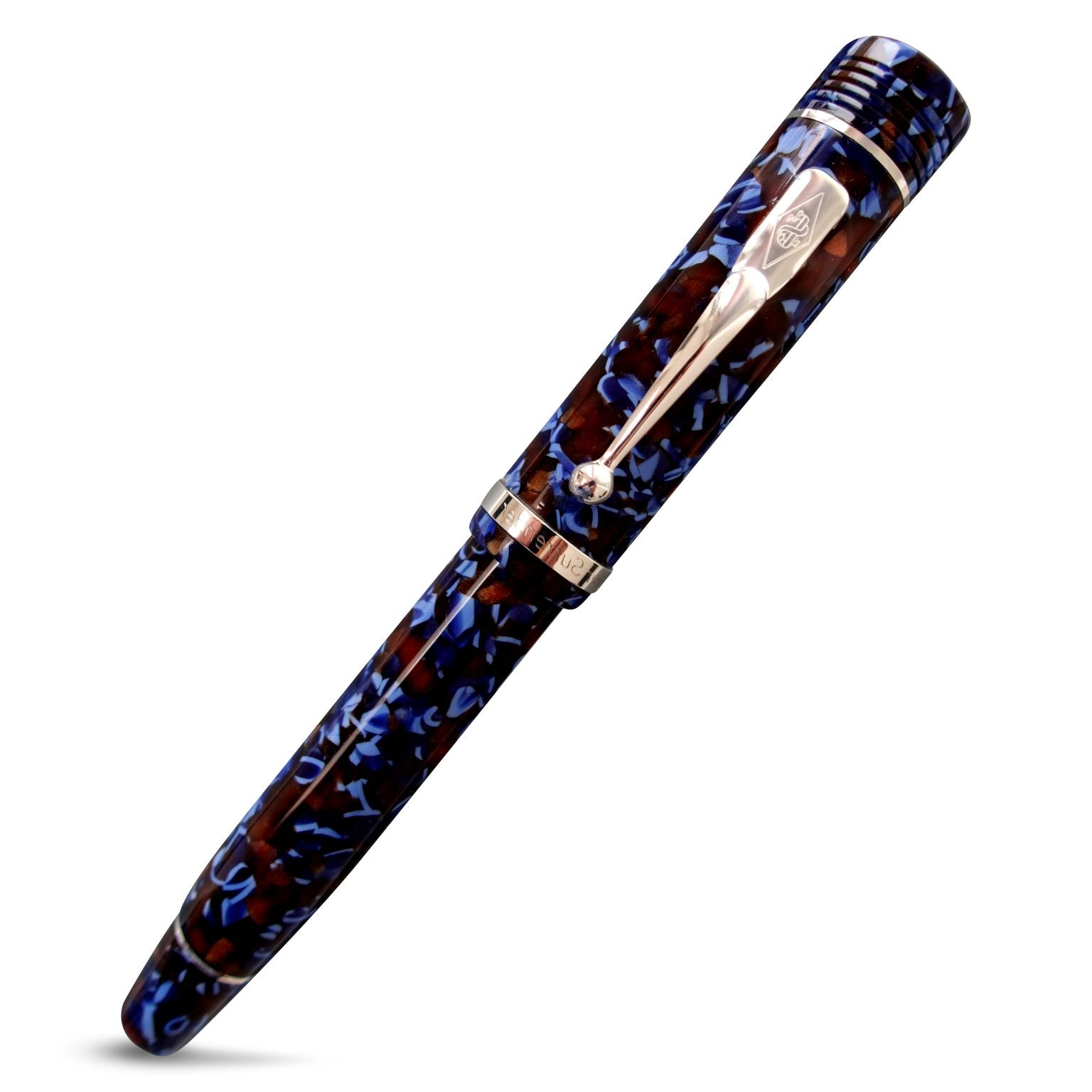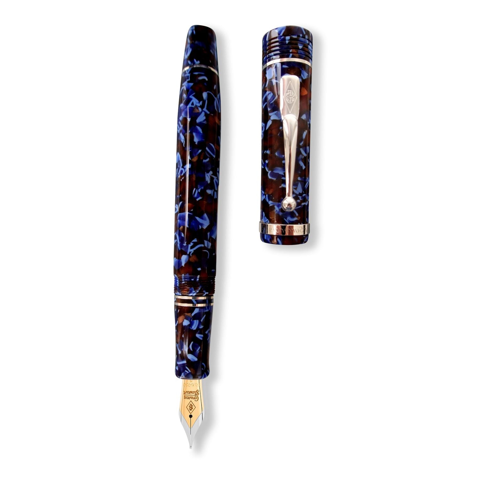 El bolígrafo Conway Stewart Churchill Flecked Autumn es un instrumento de escritura clásico e icónico, que presenta una mezcla de motas azules, marrones y negras que crean un hermoso efecto otoñal. Equipado con accesorios de plata esterlina como estándar y ahora también disponible con accesorios de oro de 9 quilates, este bolígrafo irradia elegancia y sofisticación. Viene en opciones de pluma estilográfica y roller y es el complemento perfecto para la colección de cualquier coleccionista de plumas.