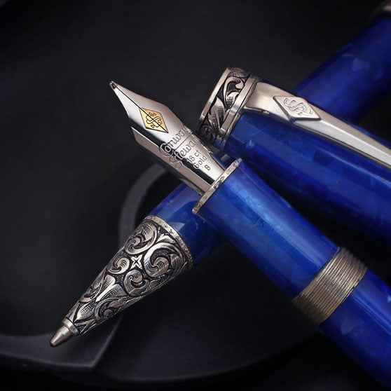 Las puntas son de oro macizo de 18 quilates con baño de rodio y están disponibles en varios grados: extrafina a extraancha, cursiva fina, cursiva media y cursiva ancha.