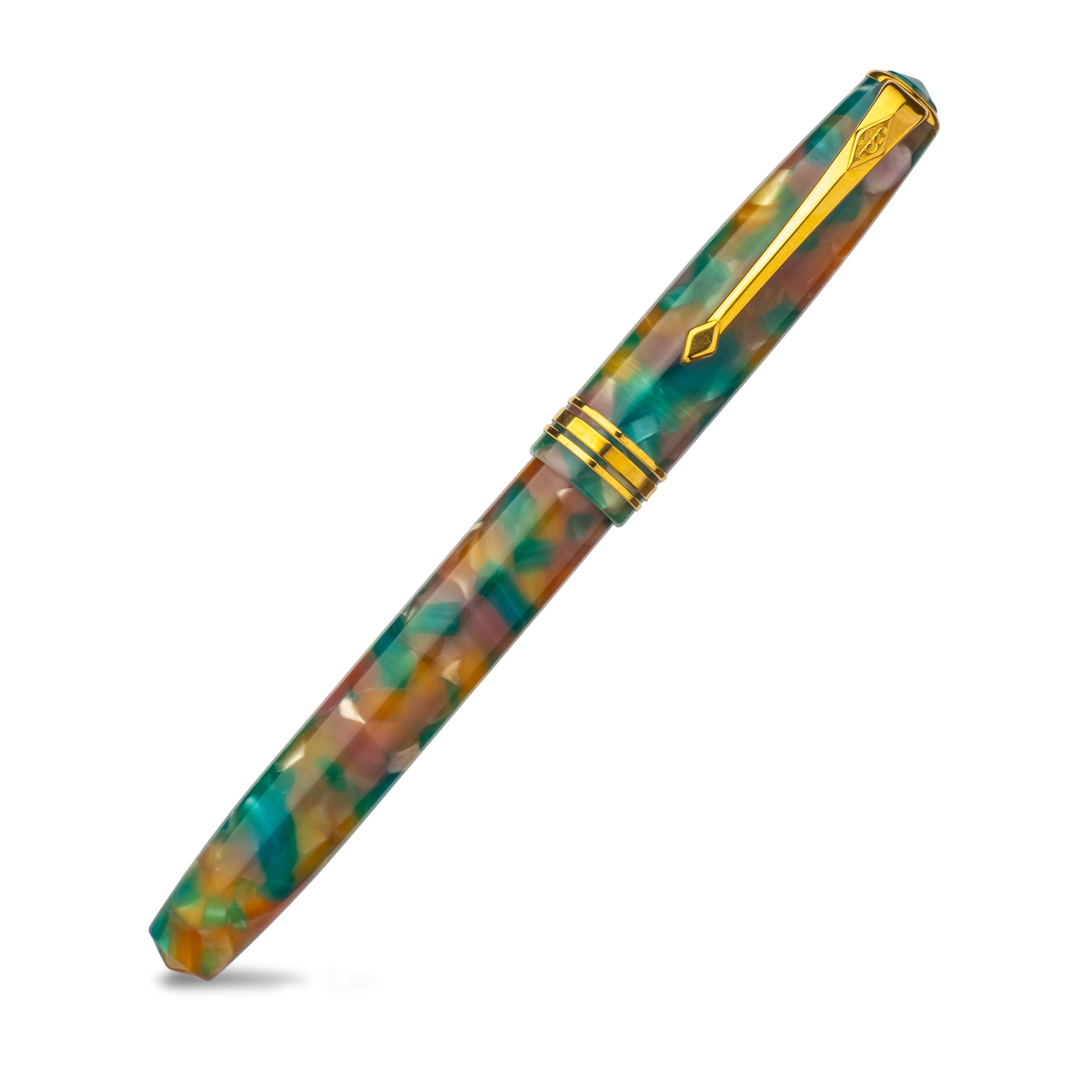 La Conway Stewart Serie 58 tiene el plumín n.° 5; es un plumín ligeramente más pequeño que el de la gama Churchill/Winston, pero aun así es un placer usarlo. El plumín n.° 5 está disponible en acabado monocromático dorado en extrafino, fino, medio y ancho. El fino es de oro de 18 quilates, mientras que los demás anchos solo están disponibles en oro de 14 quilates.