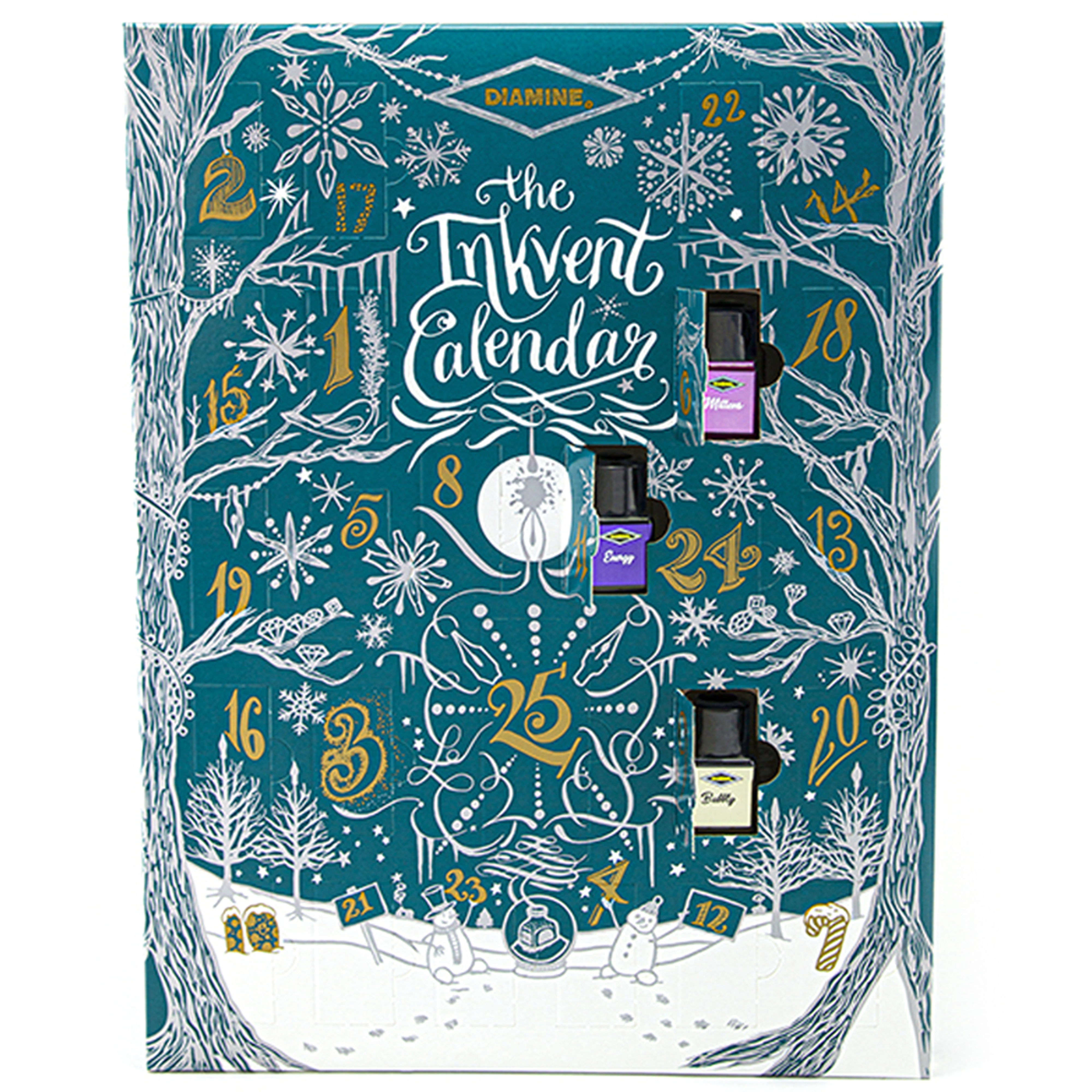 24 jours de découverte: Derrière chacune des 24 premières portes se trouve une bouteille de 12 ml d'encre vibrante.
