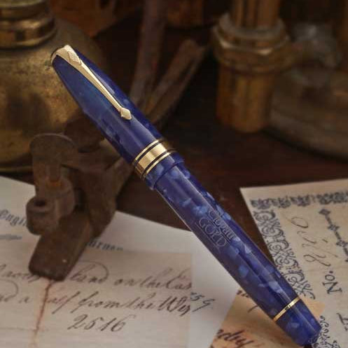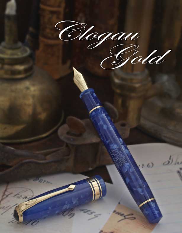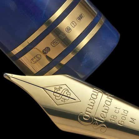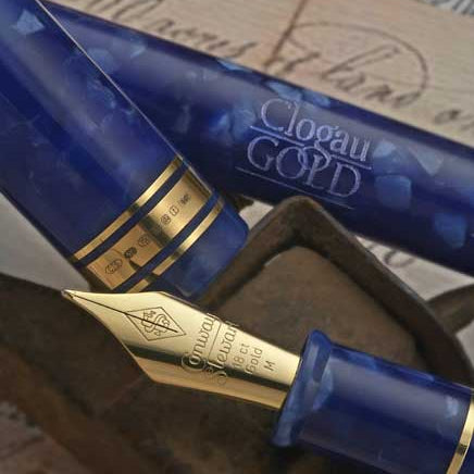 セント デイヴィッドの金鉱山からの金の採掘の 150 周年を記念して、コンウェイ スチュワートはクロガウ 150 周年記念ペンを発売しました。この洗練された万年筆はプレシャス レジンから作られ、人気のマーブル ブルー仕上げで、ライトとダークのマーブル ブルーの色合いに、きらめくパールのようなスカイ ブルーが混ざり合っています。ペンは 5 つのソリッド クロガウ 18 カラット ゴールド バンドで飾られ、ウェルシュ ドラゴンとコンウェイ スチュワートのホールマークがキャップ バンドに刻印されており、クロガウ ゴールドの純度が保証されています。バレルには、Clogau Gold のロゴと Conway Stewart のトレードマークのロゴと限定版の番号がレーザーで刻印されています。