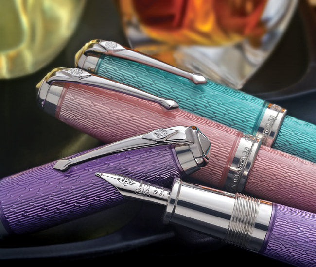 「2014年ペン・ワールド・リーダーズ・チョイス・アワード — 最優秀文化的または歴史的テーマ」にノミネート 1920 年代の古典的な時代には、高級万年筆は単なる贅沢品ではなく、日常の必需品と考えられていました。これらの万年筆の中で最も高級なものは、多くの場合、貴金属のオーバーレイ、華やかなフィリグリー、彫刻、さらにはダイヤモンドで装飾されていました。これらは贅沢なステータスシンボルとして機能し、富と退廃の派手な誇示が溢れていた時代でも注目に値しました。新しいコンウェイ スチュワート ギャツビーは、この時代を題材にして、エナメルの限定版シリーズに劇的な新しい外観をもたらします。  このデザインの目標は、アールデコ時代を象徴するスタイルと賑やかなエネルギーを取り戻すことでした。万年筆の黄金時代のヴィンテージペンから引き出された由緒あるフラットトップの形状から始まり、幅広い手のサイズでバランスが取れる形状とサイズを慎重に作り上げました。キャップとバレルの両方に線、長方形、正方形を形成する複雑な連動デザインを使用したギャツビーは、1920 年代に初めて誕生した大胆な新しいスタイルを古典的に体現したものです。キャップとバレルにはホールマークの入った純スターリングシルバーを選択し、輝く光沢に磨き上げられ、手作業で施されたエナメル加工に選ばれた深い赤と黄色の色と対比されます。結果は大胆でスタイリッシュで、使用するたびにコメントが集まること間違いなしです。 貴金属を装飾するエナメル芸術は、何世紀にもわたってヨーロッパで非常に愛されてきた伝統です。ギャツビーに使用されている繊細な彫刻デザインを生き生きとしたものにするのに最適な選択であることが判明しました。キャップとバレルを覆う鮮やかな黄色の背景の中から、豊かな明るい赤のアクセントが輝きます。半透明のエナメルを通して、彫刻の鮮明なデコ デザインが生き生きと浮かび上がり、光の下でキャップやバレルが動くたびに、この素​​晴らしいデザインの新たな側面が明らかになります。 コンウェイ・スチュワートは、英国の最高の職人技との協力関係に誇りを持っています。当社の貴金属エナメル シリーズのアーティストは、ジュエリー、盾、トロフィーの創造性とデザインで知られています。 Robert Glover M.A. RCA は、数多くの業界タイトルを出版しており、多くの著名な賞やプレゼンテーションを受賞しています。彼の作品には、主要なテレビ賞、英国音楽業界の有名で象徴的なブリットアワードのトロフィー、独占的な企業および軍事プレゼンテーションなどがあります。グローバーのこれまでの依頼には、ヒュンダイ造船会社の会長、モナコのグレース王女殿下へのプレゼンテーション作品、キュナード・ライン社のフラッグシップQE2、さらには王族向けの銀製品やパラシュート連隊と衛兵旅団向けの連隊用銀製品が含まれています。 当社のペンは最高級の素材のみを使用し、英国で手作りされています。当社の高級筆記具の製造には、233 以上の個別の工程が必要となります。当社の職人は、無垢のスターリングシルバー棒の選択、手作業によるエナメルの塗布、各筆記具の最終的な手作業研磨に至るまで、細部への細心の注意を払っていることに誇りを持っています。当社のすべての貴金属製筆記具には、925 スターリングシルバーまたは 18 カラット純金の世界標準である英国ホールマークが刻印されています。  ギャツビー リミテッド エディションのキャップ、バレル、フロント セクションの特徴的な純スターリング シルバー構造は、ロジウム メッキがアクセントになった人気の 18...