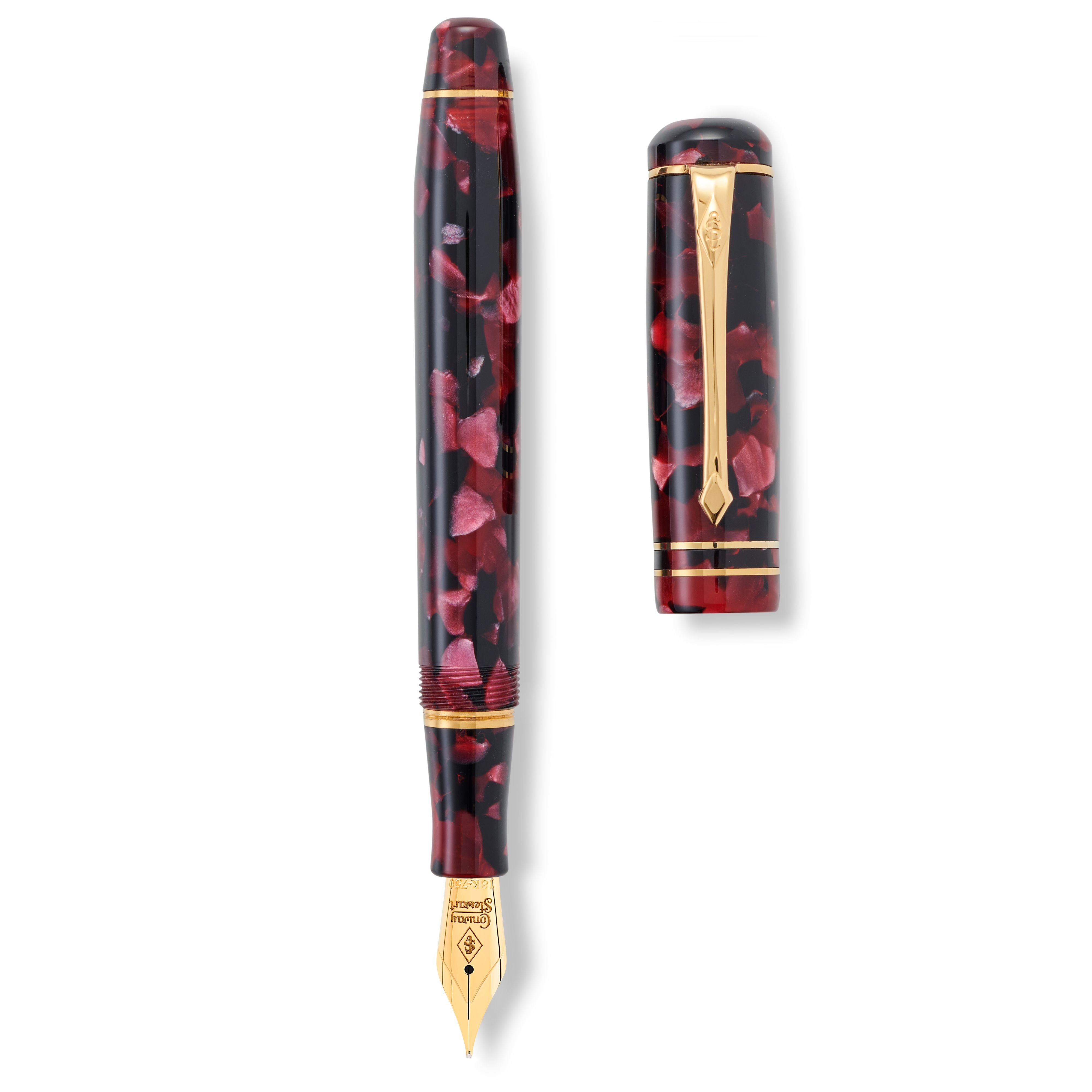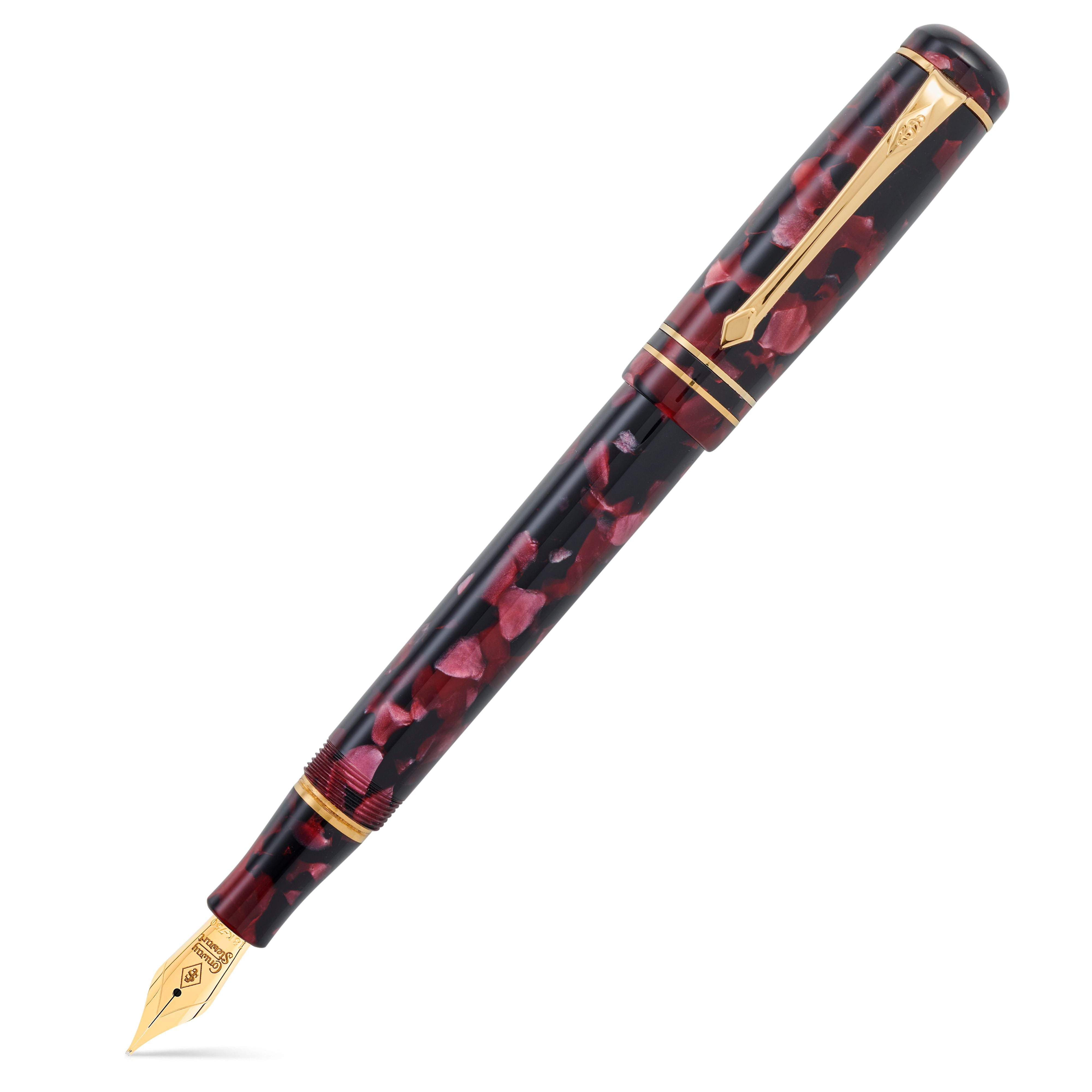 コンウェイ・スチュワートの 2013 年モンタギューとキャピュレット シリーズは、シェイクスピアの永遠の古典『ロミオとジュリエット』の主要登場人物を称え、優雅でエレガントなスリムなデザインを手に命を吹き込みます。 オリジナルのスターリングシルバーのバベッジ モデルをベースにしたこれらのペンは、キャップ、バレル、グリップ部分にハンドキャストされたアクリル樹脂の構造を特徴としています。キャピュレットには、カーディナル レッド、カッパー ブロンズ、エバーグリーン、ラベンダー、シー グリーンの 5 つの新しい鮮やかな仕上げがあり、モンタギューは、優雅なギョーシェ スタイルの彫刻が施された輝くクラシック ブラックで作られています。 これらのペンは、コンウェイ・スチュワート コレクションを日常の実用性の新たなレベルに引き上げ続けており、そのスリムなラインと完璧にバランスのとれた軽さにより、今日の忙しいライフスタイルに見事にフィットします。 システム手帳やブリーフケースとして実用的です。モンタギューとキャピュレットは、あらゆるエグゼクティブや高級筆記具の愛好家にとって完璧なアクセサリーです。 手になじみやすいデザインでありながら、機能性とエレガントさを兼ね備えた新シリーズです。万年筆バージョンには、エクストラ ファインからエクストラ ブロード、イタリック ファイン、イタリック ミディアム、イタリック ブロードまで 8 つのペン先グレードからお選びいただける大型の 18 カラット ソリッド ゴールド ペン先が取り付けられており、信頼性が高く使いやすいカートリッジ コンバーター...
