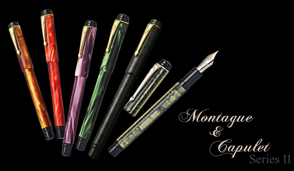 在保持手感舒适的同时,这个新系列的设计兼具功能性和优雅性。钢笔版本配备了我们的 18 克拉大号纯金笔尖,有八种笔尖等级可供选择,从超细到超宽、细斜体、中斜体、宽斜体,并采用可靠、易于使用的墨盒转换器系统。 Montague 和 Capulet II 还提供滚珠笔形式,适合那些既喜欢易用性又不想放弃液体墨水在纸张上优雅流动的用户。