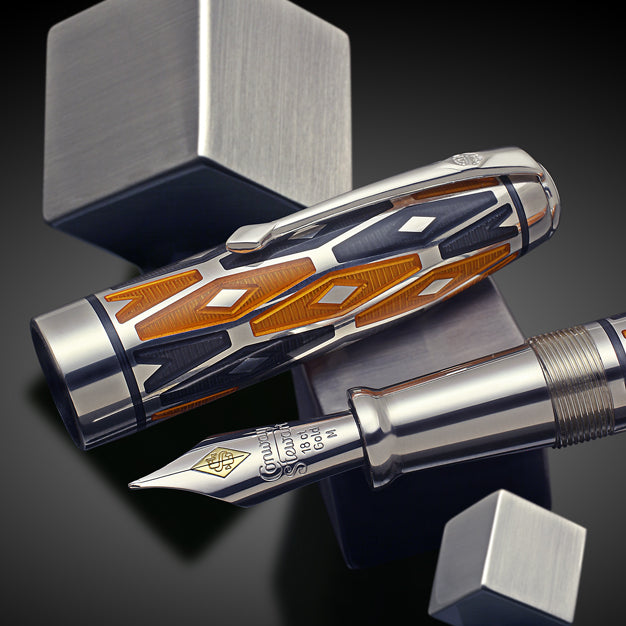 Jaguar 采用实心纯银制成,精确雕刻着复杂的抽象钻石图案,让人想起装饰艺术时期的经典外观。装饰笔帽和笔杆的每个面板均填充有手工涂抹的半透明珐琅,呈鲜艳的橙色和浓郁的灰色。底层雕刻图案清晰可见,设计精致优雅,在任何光线下也引人注目。瓶盖和笔杆端部的设计进一步受到关注,包括雕刻通道和手工涂抹的深灰色珐琅珐琅装饰带。