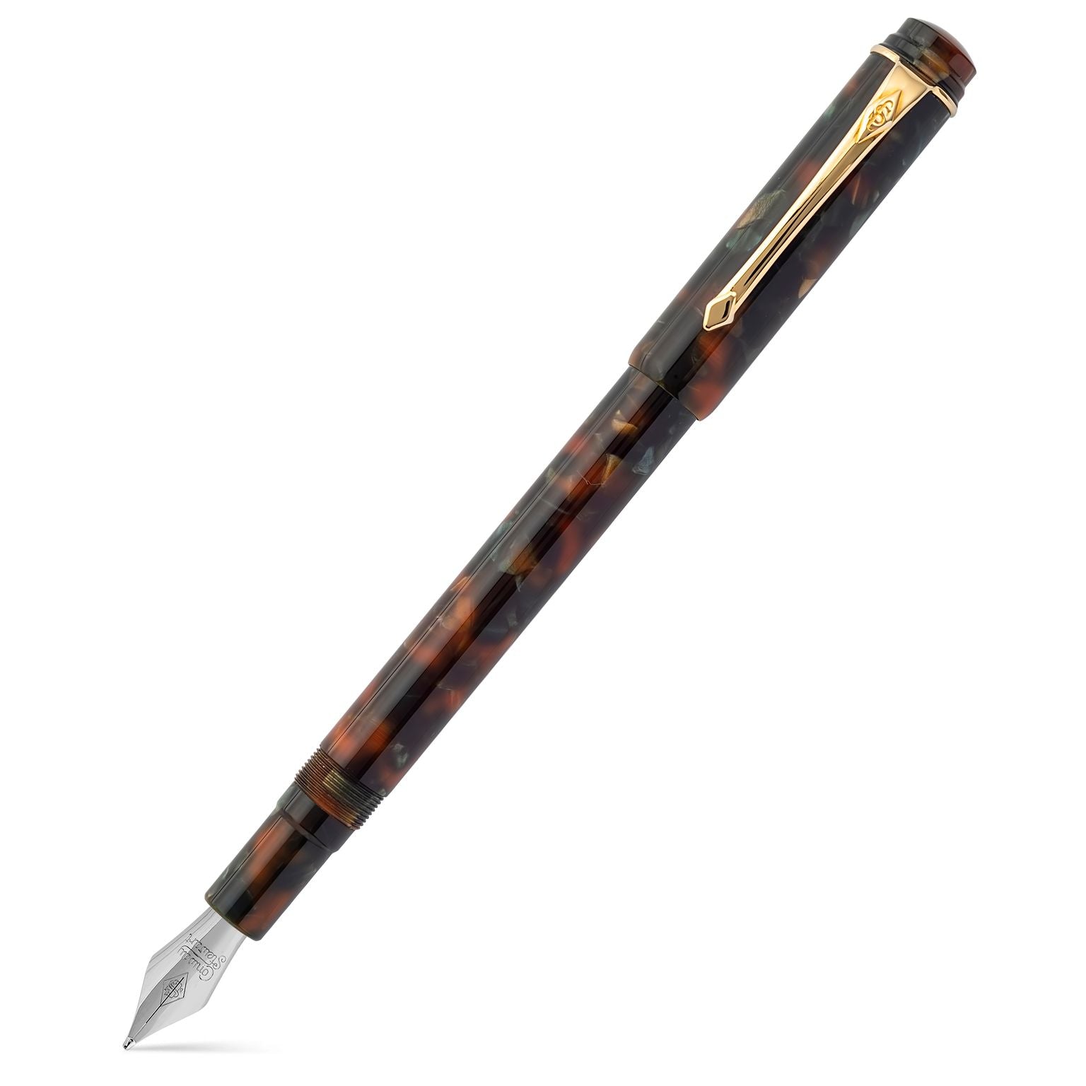 60周年庆典! 100 系列于 1954 年首次推出,很快成为康威·斯图尔特 (Conway Stewart) 制造的最受欢迎的超大号钢笔之一。为了庆祝这款 60 年前诞生的广受欢迎的标志性型号,Conway Stewart 很高兴发布由开心果手工树脂制成的 100 系列特别版——60 周年 100 特别版。这是 NEW 100 系列钢笔系列中的第一款。我们很快就会推出 100 系列的核心颜色系列,但这个特别版只有 60 种。 60 件已全部生产完毕,所有产品都在我们的工厂等待发货,我们预计所有产品都会在几天内发货!所以赶紧下单吧,以免错过这个拥有历史的机会。 这款时尚而微妙的曲线钢笔以广受欢迎的原创 100 系列为基础,采用珍贵树脂制成,采用我们广受欢迎的开心果色饰面,优雅地融合了浅绿色、深绿色、琥珀色和奶油色珠光色调。闪烁的绿色和琥珀色的微妙光线暗示着这种材料的深度。当笔在手中转动时,这种设计的纤细优雅的线条进一步使闪烁的色彩变得栩栩如生。这种大胆而独特的色彩组合与我们屡获殊荣的 100...